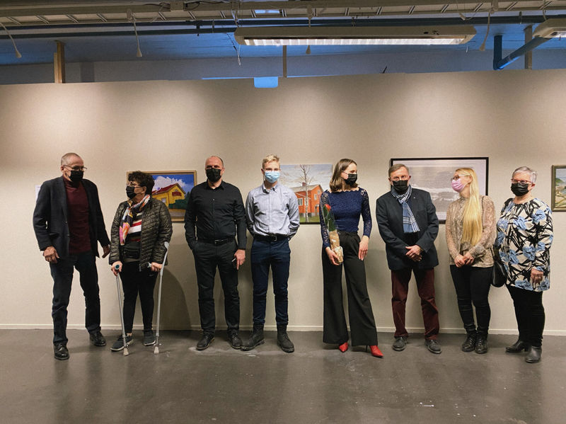 The project was collaborative throughout – Nummela’s grandparents took part in the ideation phase and the active making of the art pieces. Each piece was personalised to reflect the grandparent’s craft or creative self-expression in addition to their relationship to the artist. The mediums and techniques are embroidery on hand-painted Aida-fabric, a memoir written out by hand onto paper, a 1980s painting reimagined digitally and printed onto a puzzle, and an acrylic and oil painting on canvas. Small golden details repeat throughout the works, symbolically tying the pieces together. The parts of the artwork are named after the grandparents: Vesa, Terttu, Rauno, and Leena.